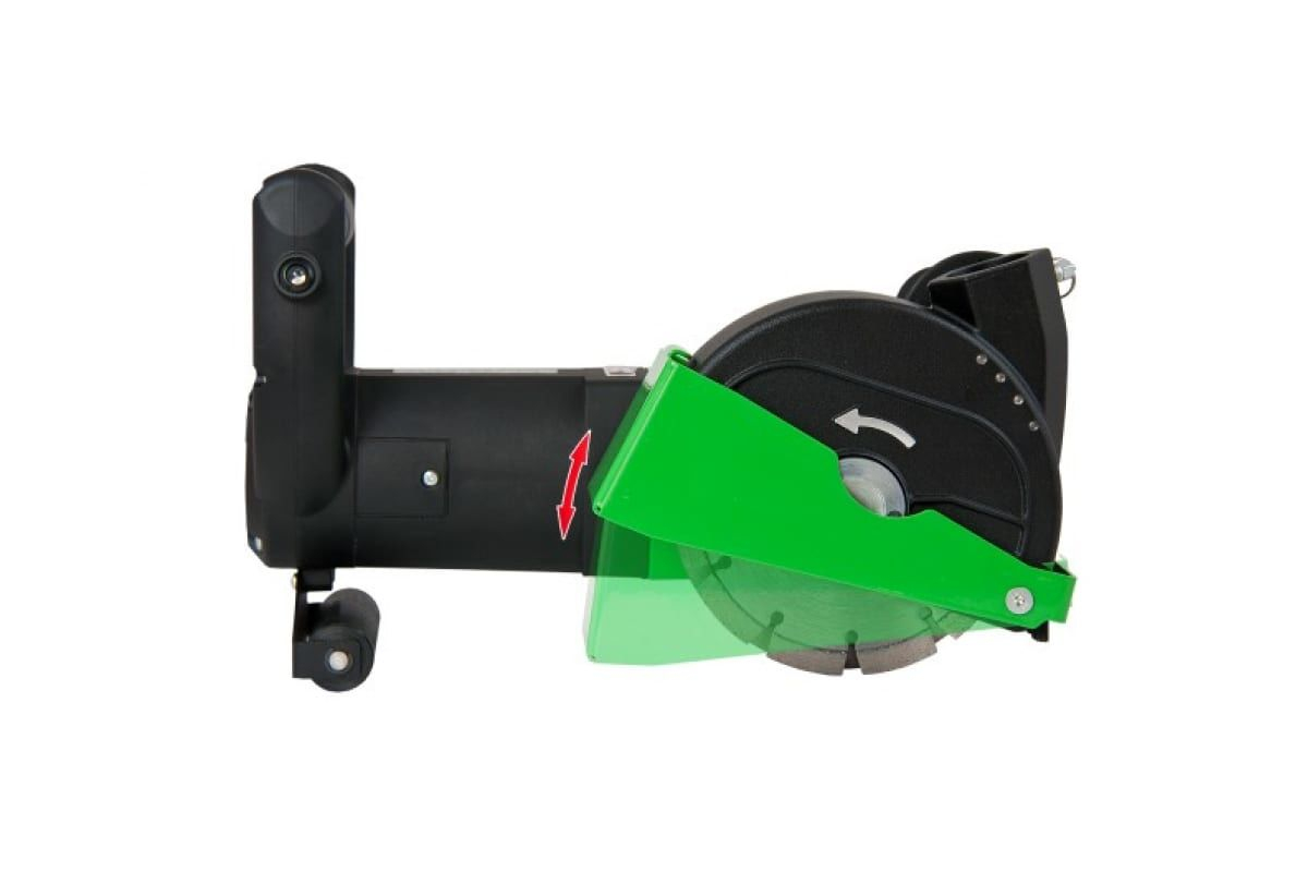 Design subțire, distanță mică între capota de praf și lamele diamantate pentru a lucra până la 15 mm de margine.Lățimi de slot de 7-48 mm reglabile în trepte de 1 mm. Hota închisă - flux optim de aer, îndepărtarea ușoară a fragmentelor. Mașina funcționează în direcția de tăiere - permite o manevrare confortabilă